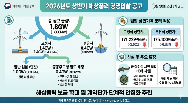 ±âÈÄ¿¡³ÊÁöȯ°æºÎ°¡ ÃÑ 1.8±â°¡¿ÍÆ®(GW) ±Ô¸ðÀÇ '2026³âµµ »ó¹Ý±â ÇØ»ódz·Â °íÁ¤°¡°Ý°è¾à °æÀïÀÔÂû'À» °ø°íÇÑ´Ù°í 30ÀÏ ¹àÇû´Ù. Áö³ÇØ ÇϹݱ⠰dzʶپú´ø ÀÔÂûÀÌ 1³â ¸¸¿¡ Àç°³µÈ ¸¸Å ¹Î°£ »ç¾÷ÀÚ¸¦ Áß½ÉÀ¸·Î Ä¡¿ÇÑ °æÀïÀÌ ¿¹»óµÈ´Ù.