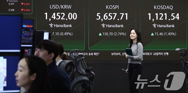 ÄÚ½ºÇǰ¡ »ç»ó óÀ½À¸·Î ÀåÁß 5600¼±À» µ¹ÆÄÇÑ 19ÀÏ ¿ÀÀü ¼¿ï Áß±¸ ÇϳªÀºÇà µô¸µ·ë¿¡¼ µô·¯µéÀÌ ¾÷¹«¸¦ º¸°í ÀÖ´Ù. 2026.2.19 ¨Ï ´º½º1